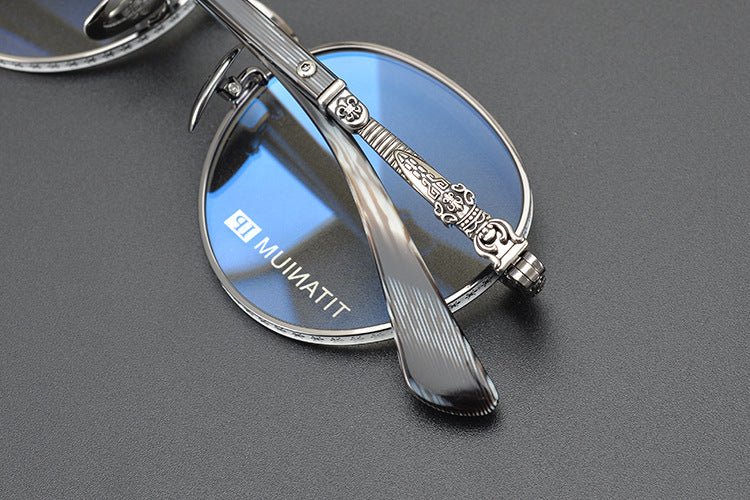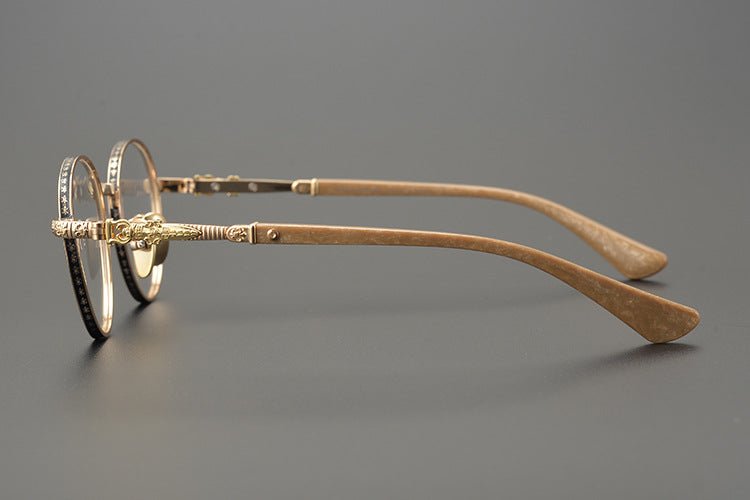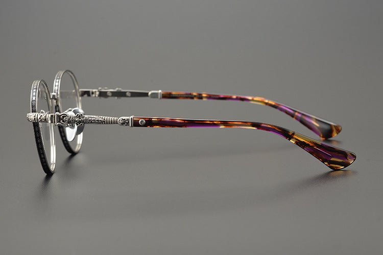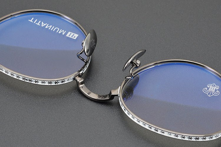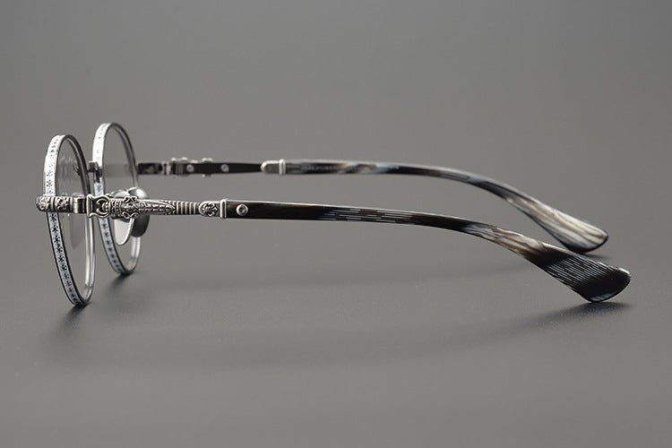 Gothic Yuppie Round Glasses – Hand-Engraved Chrome Hearts Style Titanium Frame