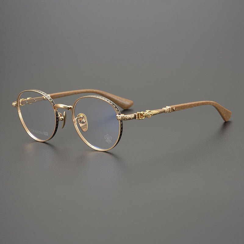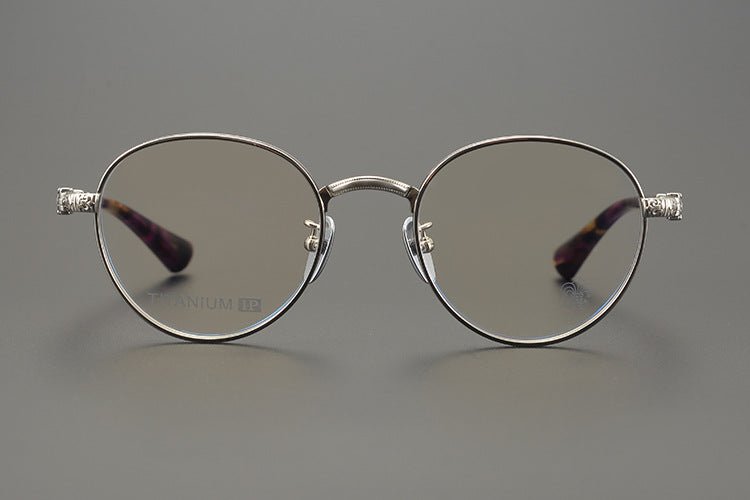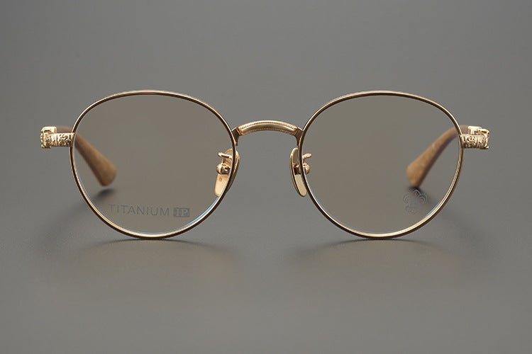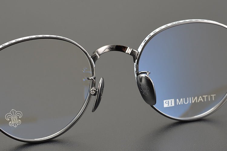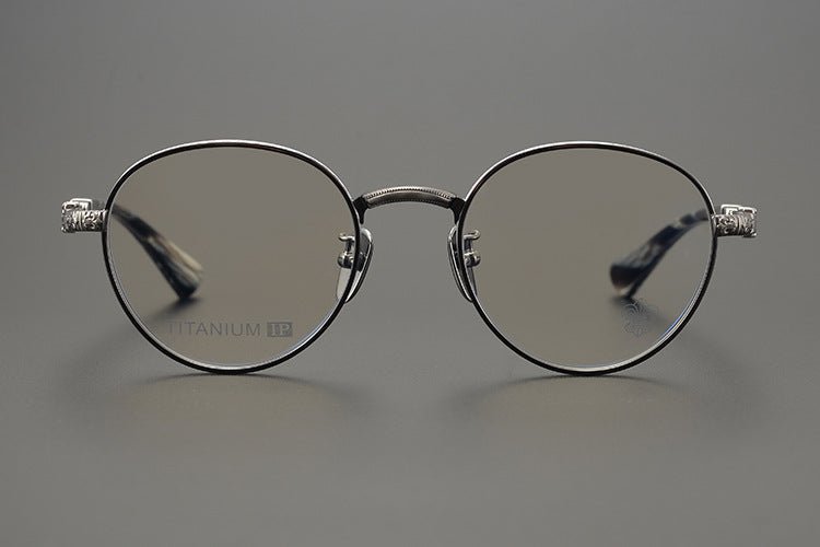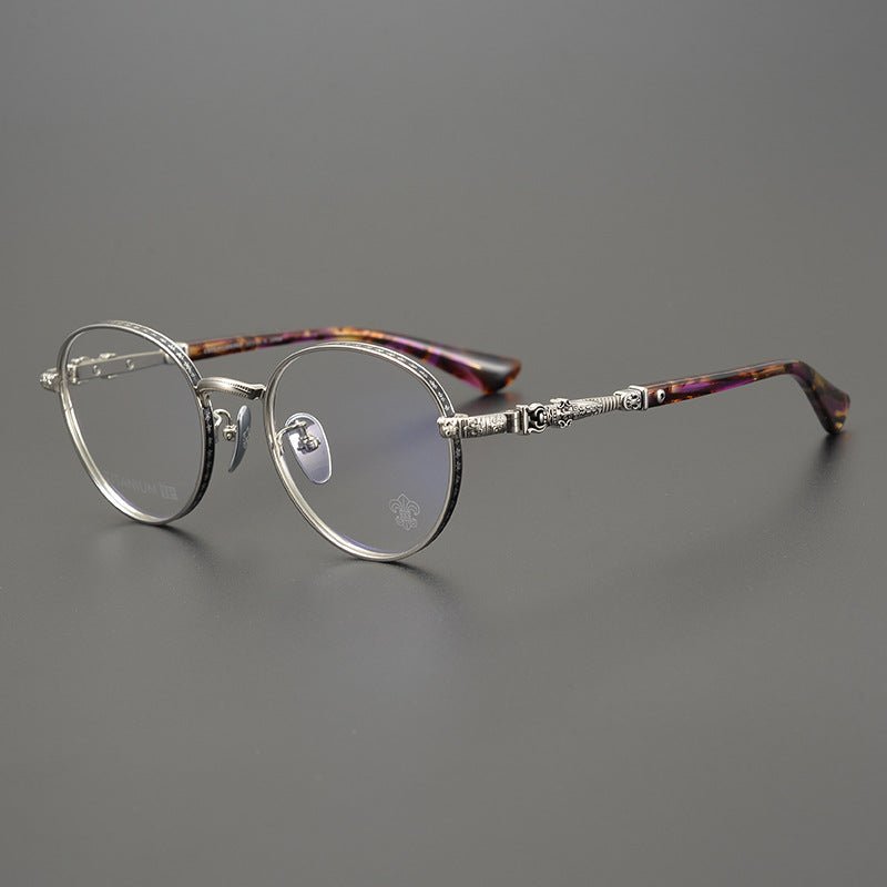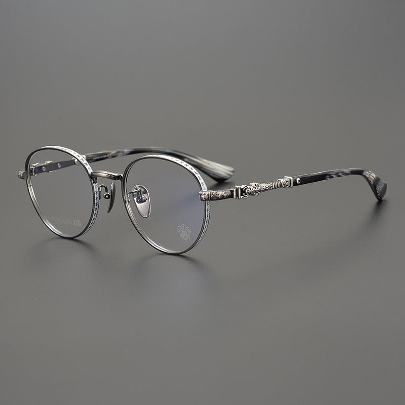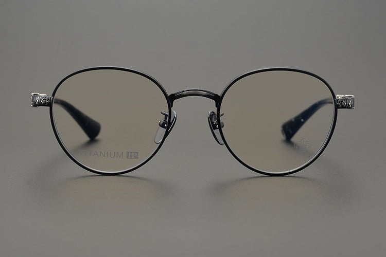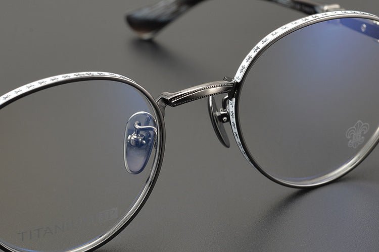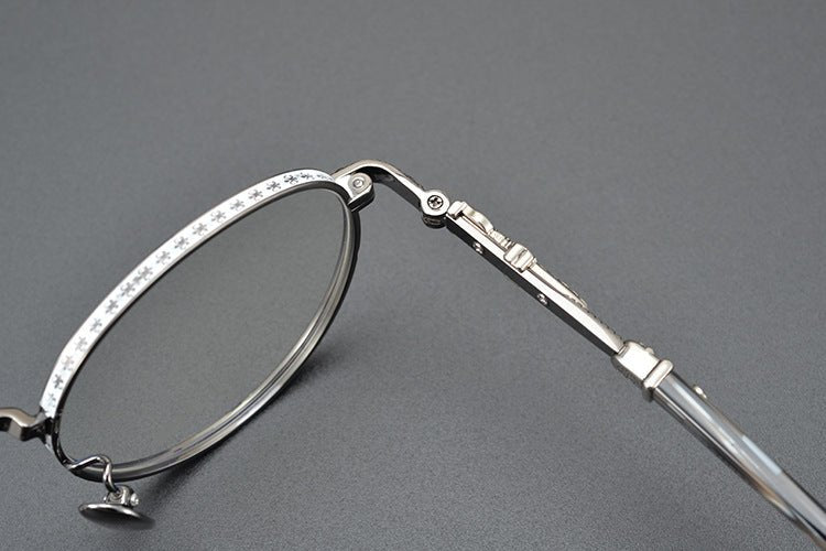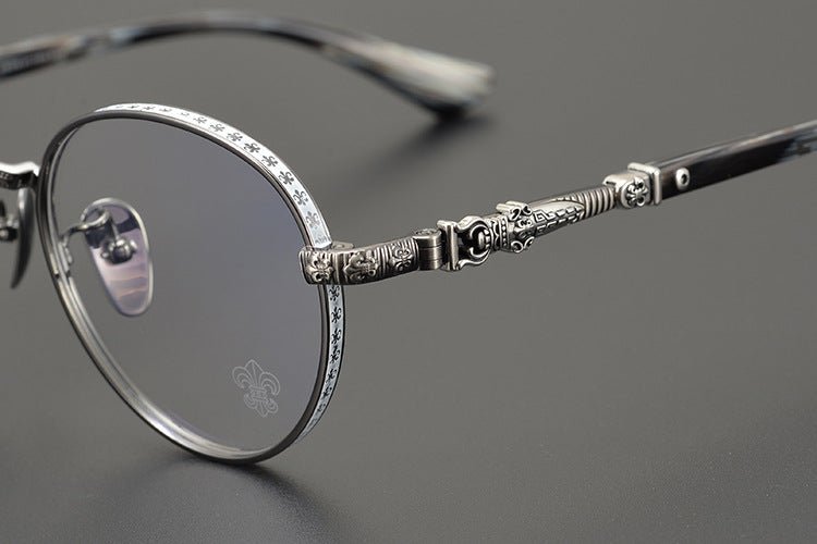 Vintage Round Eyeglasses with Cross Engraving | Pure Titanium Chrome Hearts-Inspired Frame – Unisex Design