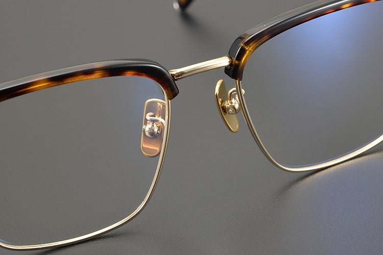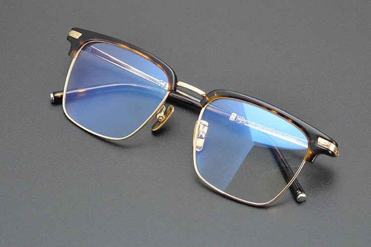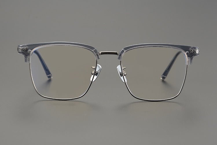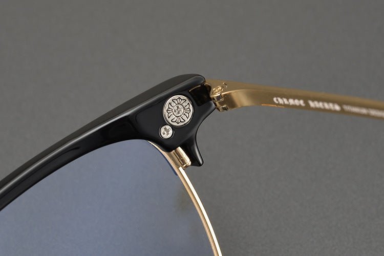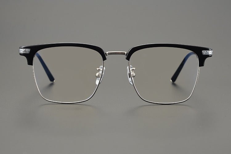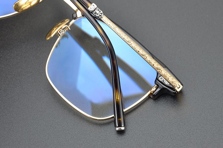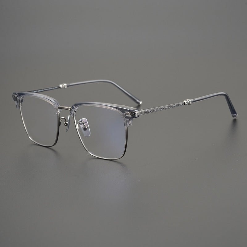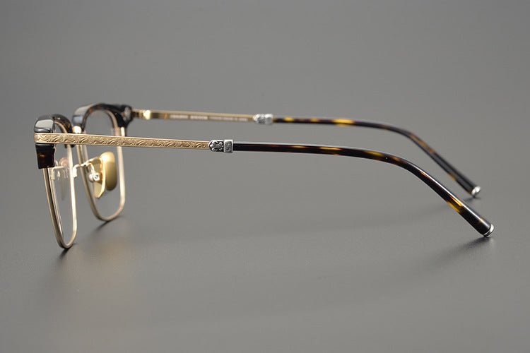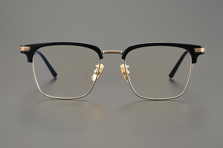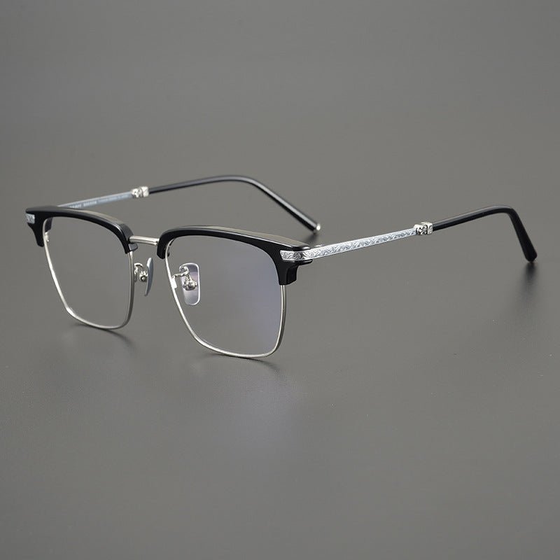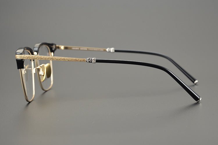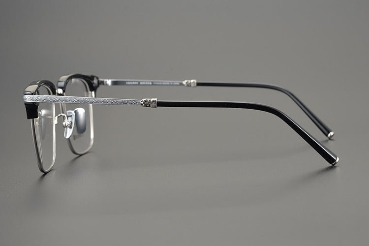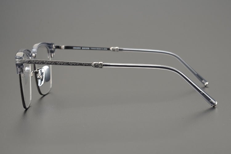 Japanese Handmade Titanium Browline Glasses - Chrome Hearts Series Cross Engraved Men's Glasses