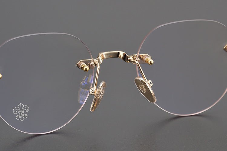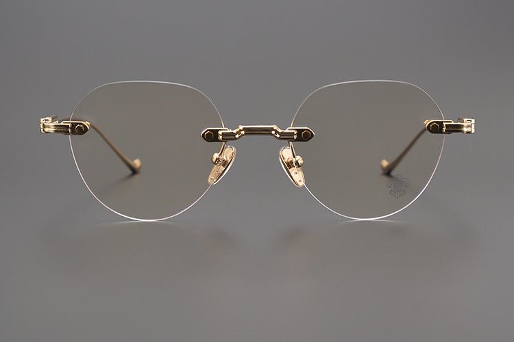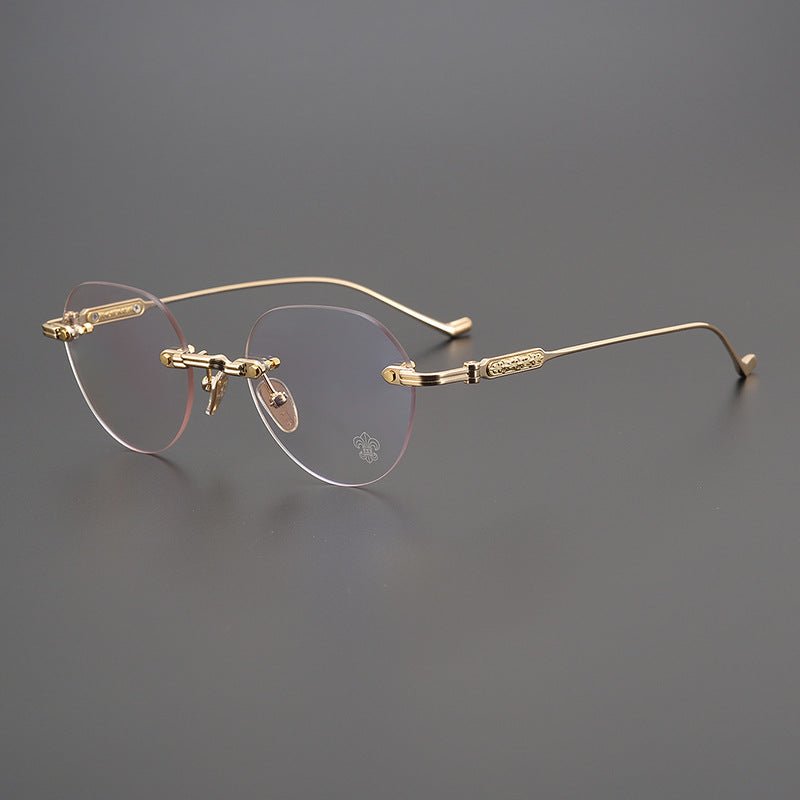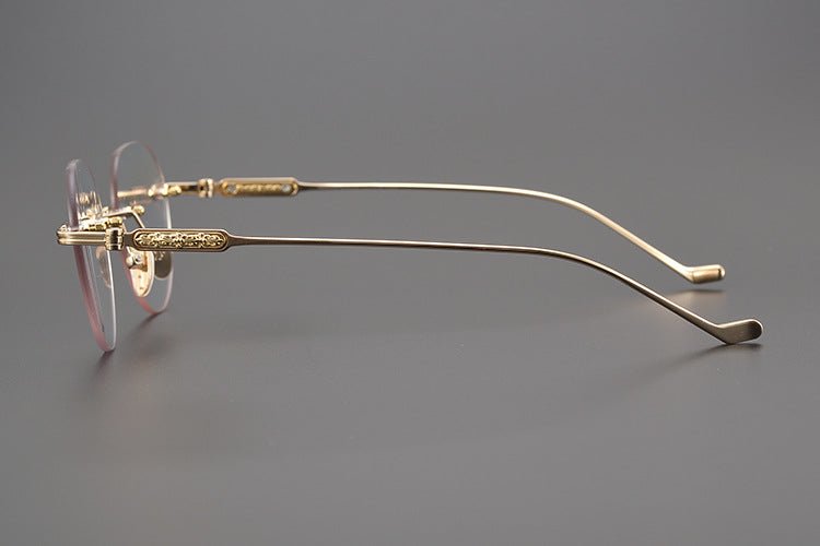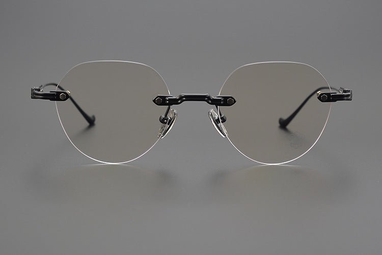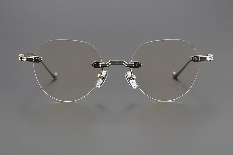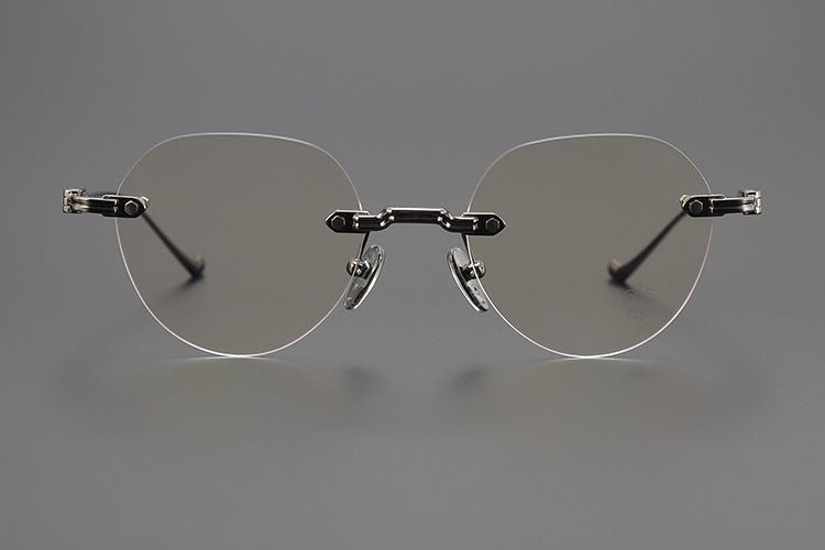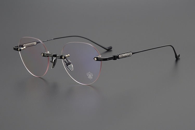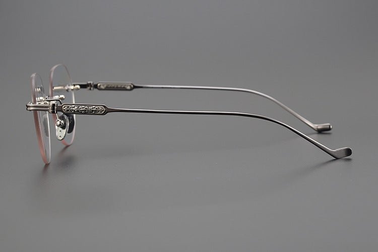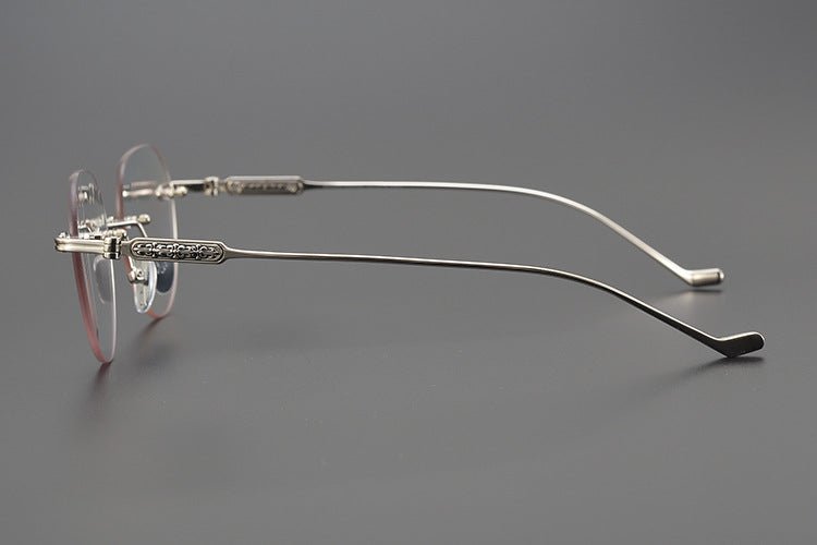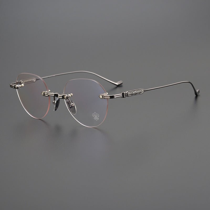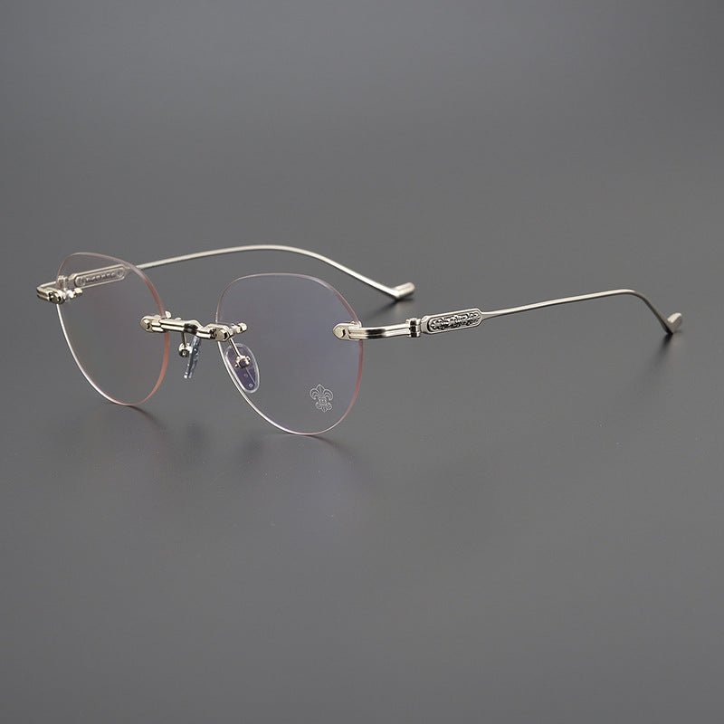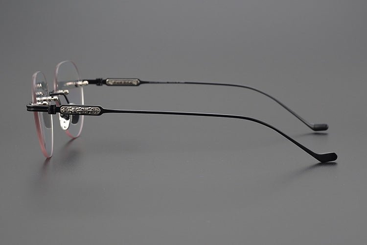 Gothic Punk Rimless Round Titanium Eyeglasses | Cross-Engraved Design Eyeglasses