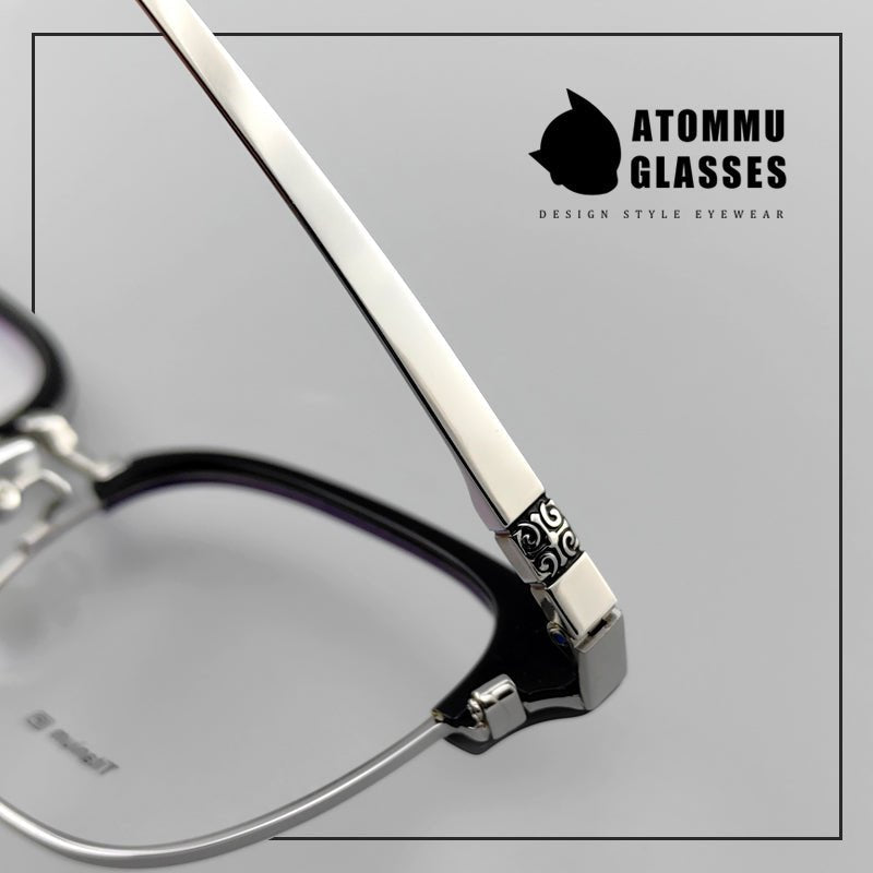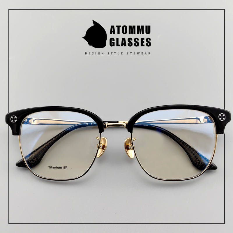 眉線鈦金屬眼鏡,搭配復古雕刻鏡腳 | 經典男女半無框眼鏡 - EO-622